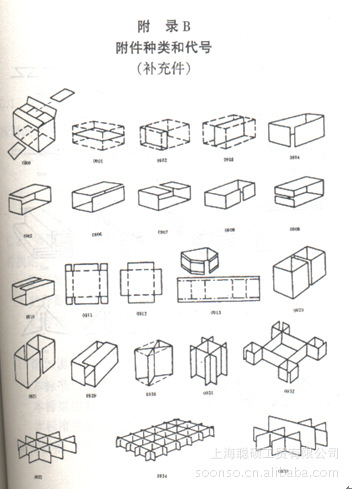 B 襯板:襯板基本上由三中,一種是全襯板,用于箱內(nèi)多層堆放作分層隔離之用。第二種是過橋襯板,是用于紙箱內(nèi)搖蓋合籠處,墊平空隙之用。第三種是襯圈,為提高紙箱的抗壓強(qiáng)度和保護(hù)商品,在紙箱的四個(gè)側(cè)面均圍上襯板。