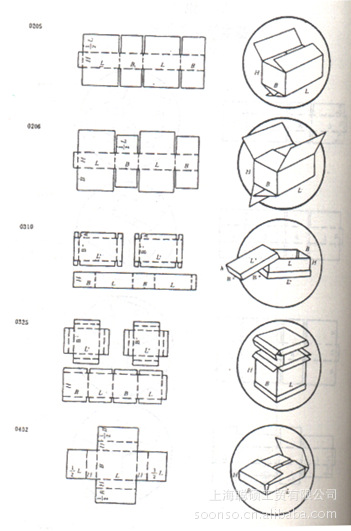 注意:包卷式瓦楞紙箱(即自動(dòng)包裝紙箱)與0210型箱有些相似,其差別在於:0210箱楞向平行於箱坯紙板寬,而包卷式紙箱楞向平行於紙板長(zhǎng);0210箱接頭連接在主箱面,而包卷式紙箱卻連接在側(cè)箱面;0210箱內(nèi)外搖蓋壓痕線在一條直線上,而包卷式箱則不同。另,與標(biāo)準(zhǔn)箱相比,包卷式紙箱的特點(diǎn)是用材較少,紙箱與內(nèi)裝物緊緊相貼,可以實(shí)現(xiàn)高速自動(dòng)化。